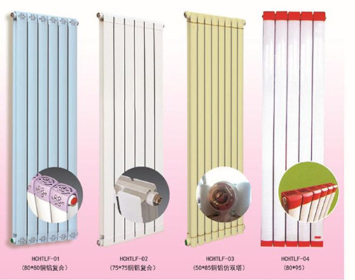 銅鋁復合散熱器采熱管采用99.9%T2無氧紫銅管,散熱翼采用L6360專用鋁型材。具有導熱性能高,節(jié)能環(huán)保,使用壽命長。連接方式一般為側近測出,進出水口在兩側各兩個,可以同側上進下出、異側下進下出、低端低進低出,設計有專用托卡,將散熱器托掛在墻壁上。散熱器水道因是銅結構,具有突出的防腐性能和防氧化性能,適用于不同品質的水作熱媒。